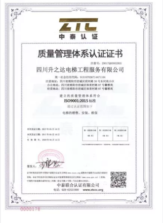 公司以“诚信服务,勇攀高峰”为宗旨,一贯坚持客户满意为我们的追求目标,公司能承揽电梯行业内各大品牌的销售、安装、维修改造业务。公司成立14年来在销售、安装、维修方面取得了显著成绩,公司已经通过ISO9001质量、环境、健康体系认证,为在电梯行业长期发展打下了坚实基础。